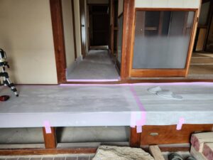 工事を始める前にはプラダンで養生します。