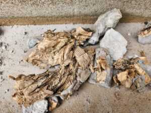 ↑上塗りの下地として新聞紙を詰め込んでいます。