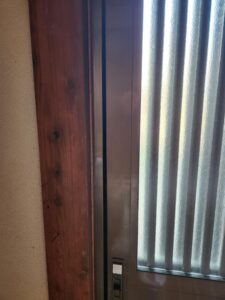 ↑よく見ていただくと柱と扉の間を調整するための木を挟み込んでいます。