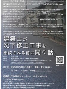 戸建て住宅が沈下しているが、このままで大丈夫だろうか?というご相談。
