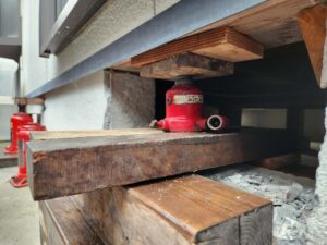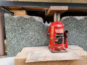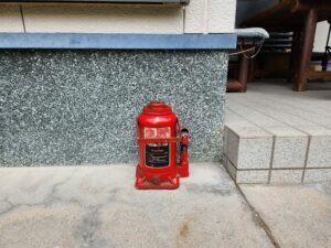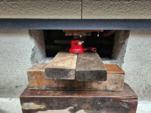 プロは出来る限り、基礎梁に負荷を掛けないようにジャッキをセットします。