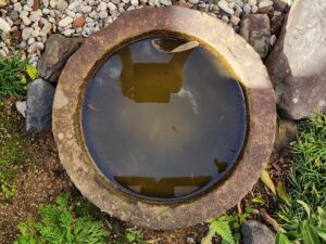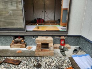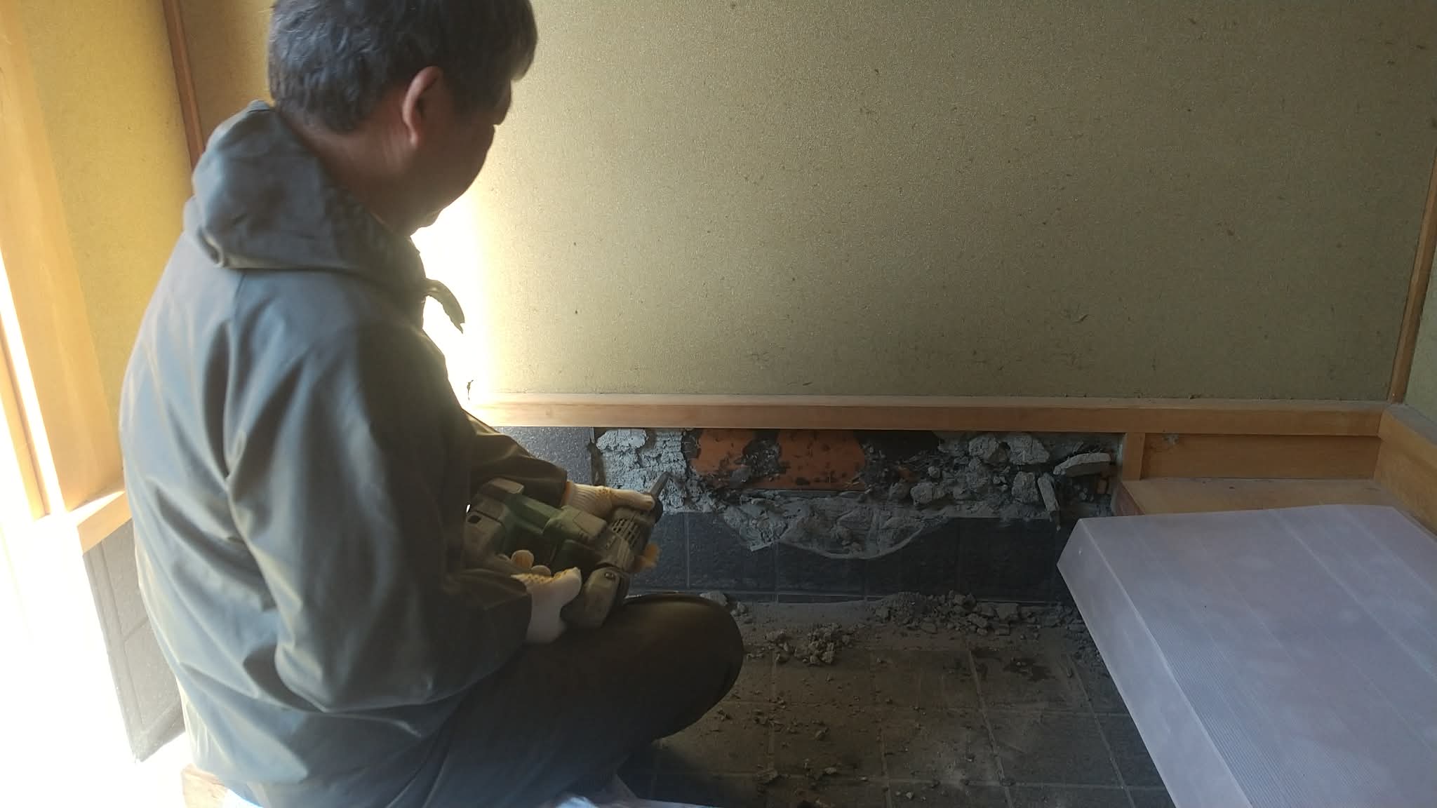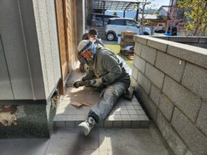 庭側のメダカさんたちに粉塵でご迷惑かけないよう配慮しつつの施工です。