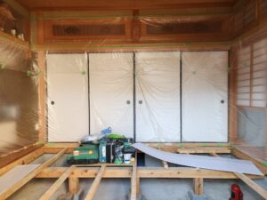 畳の部屋があると、そこを床下への進入口に出来ますのでたいへん作業効率が増します。